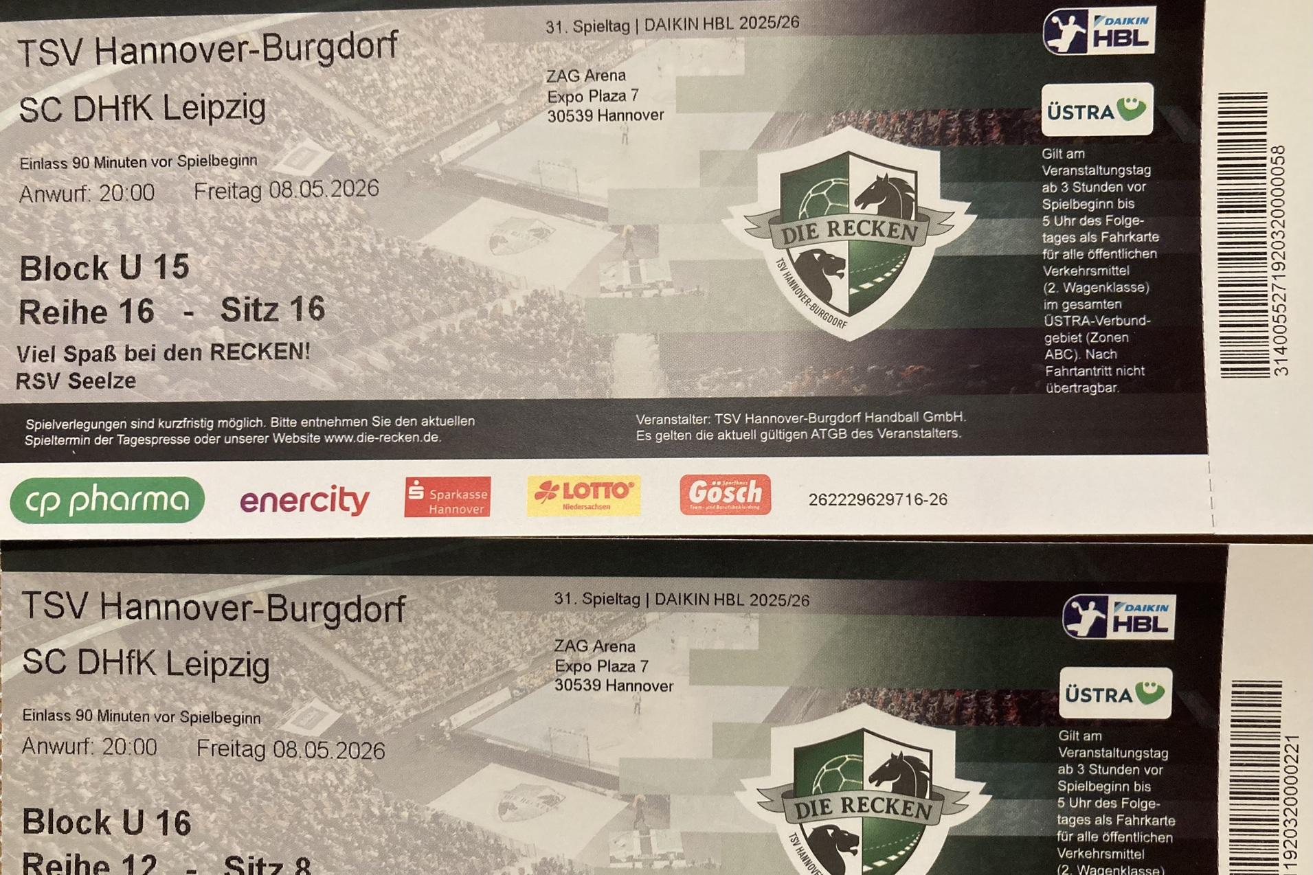 Wir, der RSV Seelze feiern in diesem Jahr 75 Jähriges Bestehen und freuen uns bei den Recken, unserem Partnerverein, als Jubilar des Spieltages dabei sein zu dürfen. Wir waren schon oft beim TSV Hannover-Burgdorf mit unseren Nachwuchsspielern und deren Eltern, die sich immer besonders freuen, wenn der RSV Handball mit aufs Feld läuft. Am 8. Mai 2026 genießen wir zusammen mit unseren vielen Ehrenamtlichen auch aus dem Bereich Turnen und Volleyball das Event mit dem Meet and Greet und sind um 20 Uhr mit dabei, wenn die Partie gegen Leibzig angepfiffen wird! Danke Janet, dass Du Dich um die Bestellung gekümmert hast und Dankeschön an unseren Partenverein, die Recken, dass ihr uns hinter Eure Kulissen schauen lasst. Das ist ein ganz besonderes Highlight!