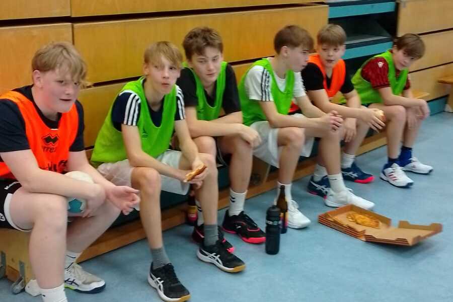 Es ist schon Tradition beim RSV Seelze, dass das letzte Handball-Jugend-Training des Jahres Gruppen übergreifend stattfindet. Da spielen alle gern in Turnierform Handball in wild bunt gemischten Teams. Die Trainer und Trainerinnen übernehmen die Turnierleitung und denken sich Spielchen aus, damit alle viel Spaß haben beim Rennen und Rangeln um den Ball. Und weil Handball spielen so richtig hungrig macht, gab es diesmal zur Feier des Tages Pizza und wie versprochen die Kiste Spezi für die gute Teamleistung.