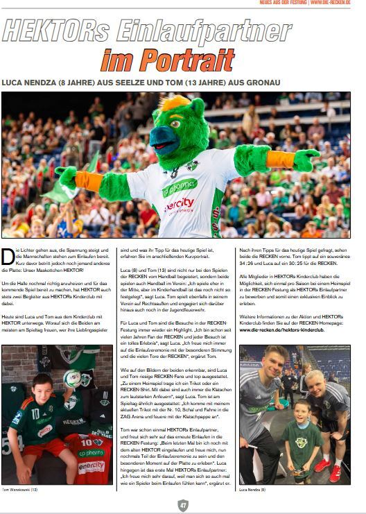 Mit einer riesigen Delegation reiste der RSV Seelze am Sonnabend zum Handballspiel der Recken an. Die TSV Hannover-Burgdorf trat gegen den Deutschen Meister des SC Magdeburg an. Unter den Seelzern waren auch SC Magdeburg Fans. Janet Zoll hatte insgesamt 232 Karten geordert für das Spitzenspiel. Für viele RSV Kinder war die Begegnung ein besonderes Highlight, denn sie gehörten zum Spalierteam und waren hautnah dabei. Fabian Zoll durfte als Spielballkind den Spielball überreichen und Hektors Einlaufpartner waren Hannah Sophie und Lea Luna Zoll, die das Maskottchen der Recken in die Arena führten.